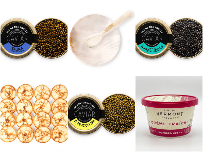 - 1.75oz Fulton Fish Market Classic Osetra Caviar: Osetra caviar is a true delight for connoisseurs thanks to its unique, clean, sweet, crisp, and subtly nutty taste.