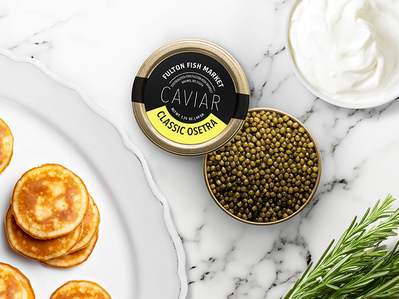 Indulge with our prized Osetra caviar. It's distinguished by what many would consider a perfect balance of nutty and briny notes with a tender texture satisfying finish. The medium to large pearls present exceptionally well with shades of amber and black.
